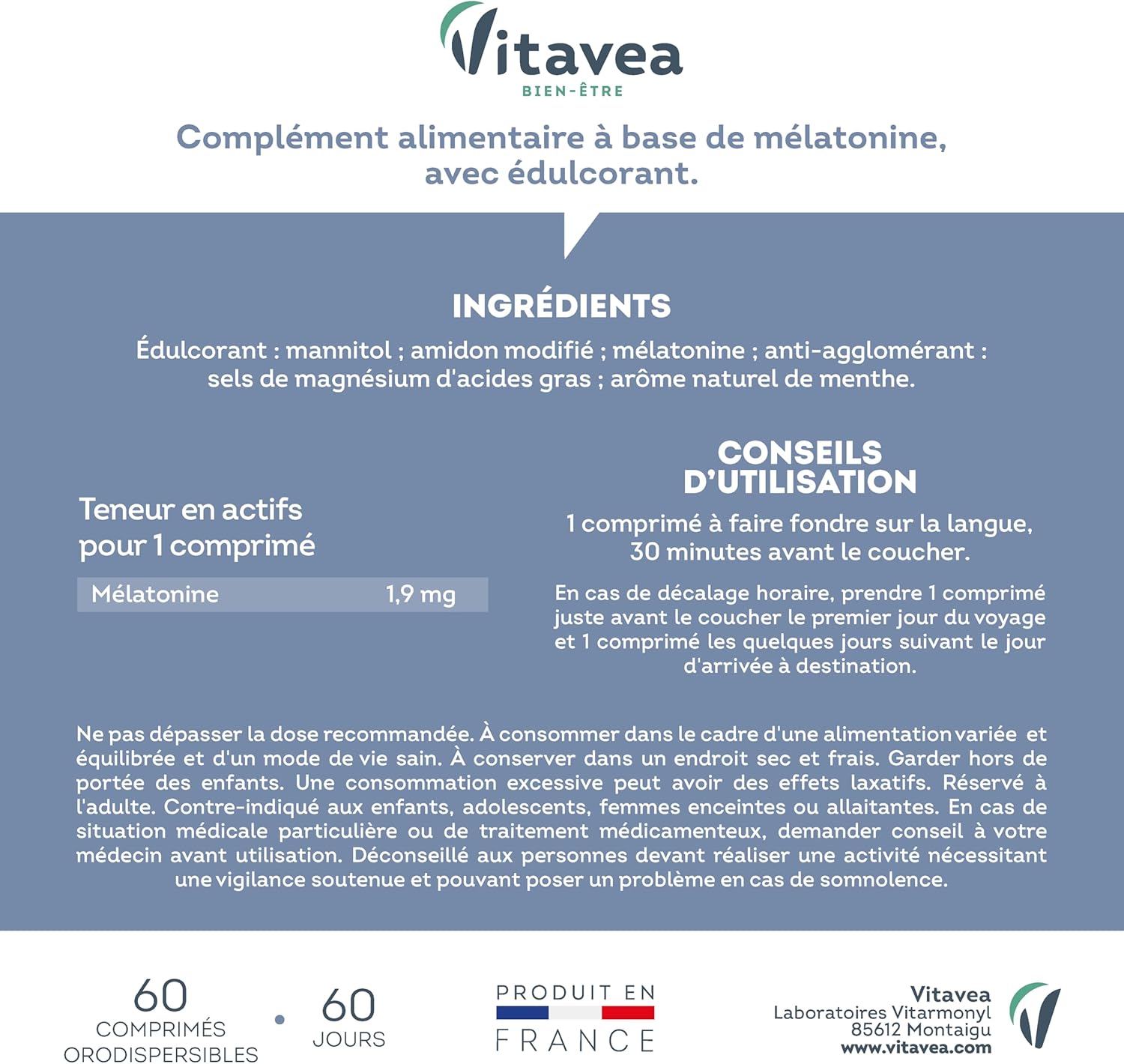 Formuła MÉLATONINE FLASH 1,9 MG od VITAVEA BIEN-ÊTRE to Twój sprzymierzeniec w poprawie jakości snu.